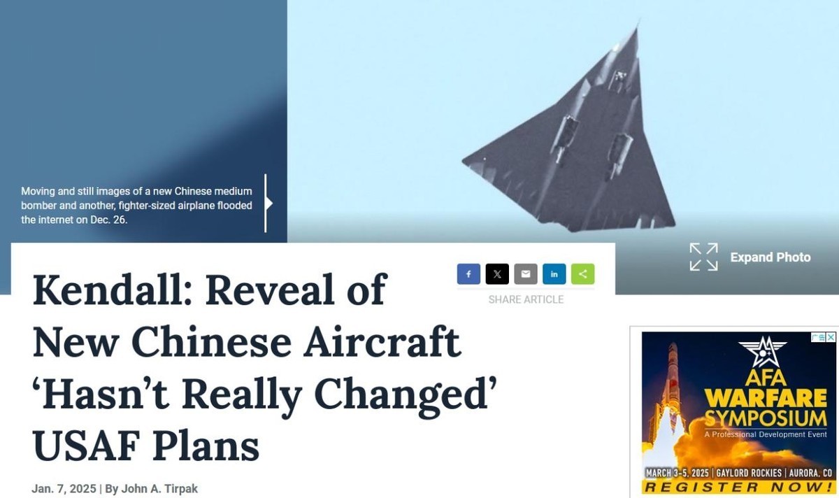 中国两款新一代战机试飞后,五角大楼经过多日的反思,似乎终于认清现实:放弃研发重型六代机。