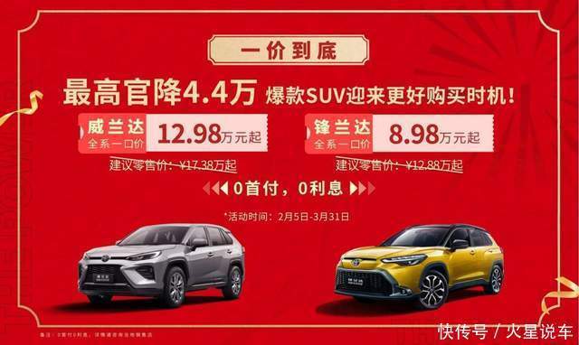 值得一提的是,除了特斯拉和小鹏在近期宣布降价之外,还有不少车企跟上,而且除了新能源车,燃油车阵列也进一步加码这也预示着下半年的价格战会非常激烈。首先广汽丰田推出 了“一口价”优惠政策,目前SUV车型代表锋兰达已经降至8.98万,而威兰达的起售价也低至12.98万,降幅分别高达3.9万和4.4万。